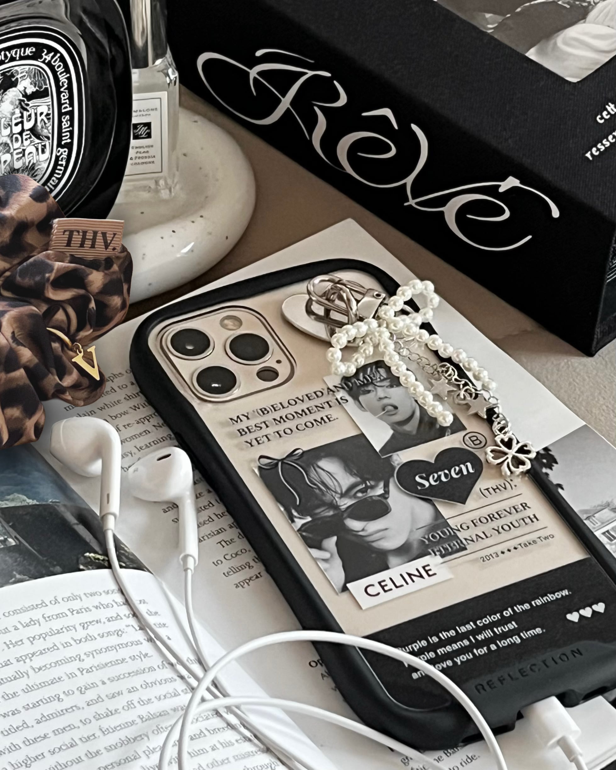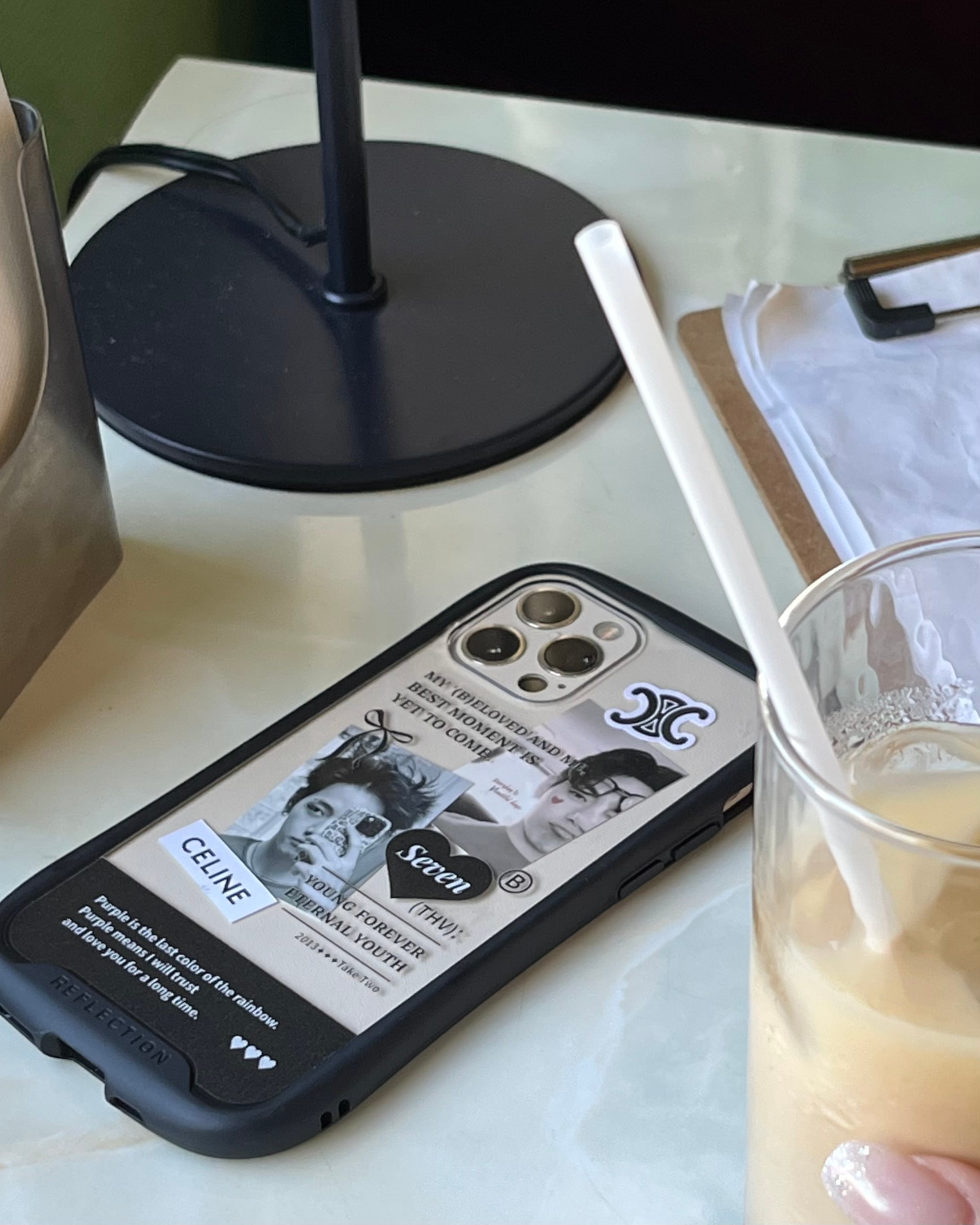 ブラックのグリップと背面のクリアの組み合わせがスタイリッシュで、中に挟むものによって様々な雰囲気を楽しめるのがポイントです。